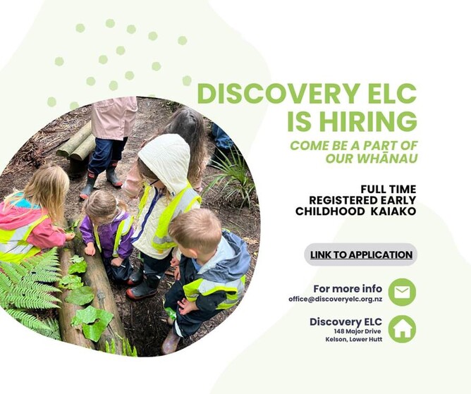 Discovery Early Learning Centre is a small, Christian, community-based centre. We have a heart to provide loving, nurturing care for tamariki in a peaceful, learning environment. Our centre is licensed for 36 children aged 2-5. We are looking for a Kaiako who will contribute to and fit well with the special Christian character of our centre. We have a stable, caring and supportive team who like to laugh and learn together, and we will value your strengths and support you to grow your leadership capabilities.