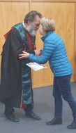 Kaiako Esther receiving her certificate from Dr Mike Paki